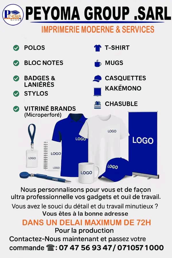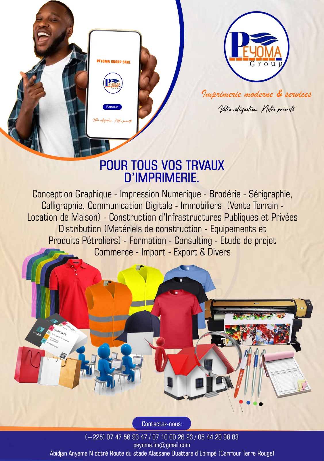 PEYOMA GROUP SARL offre des solutions personnalisées en impression, communication, immobilier, distribution et consultance, aidant ainsi nos clients à rester compétitifs et à la pointe de leur secteur.